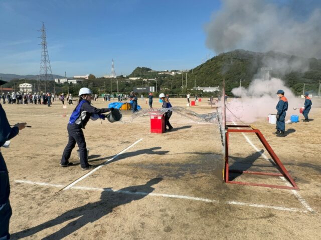 10月30日(木)、福山地区消防組合主催の消防競技大会が福山市箕沖球場で開催され、ツネイシカムテックスから、「一般消火の部(女性の部)」と「危険物施設の部」に、各1チーム(計4名)が出場しました。