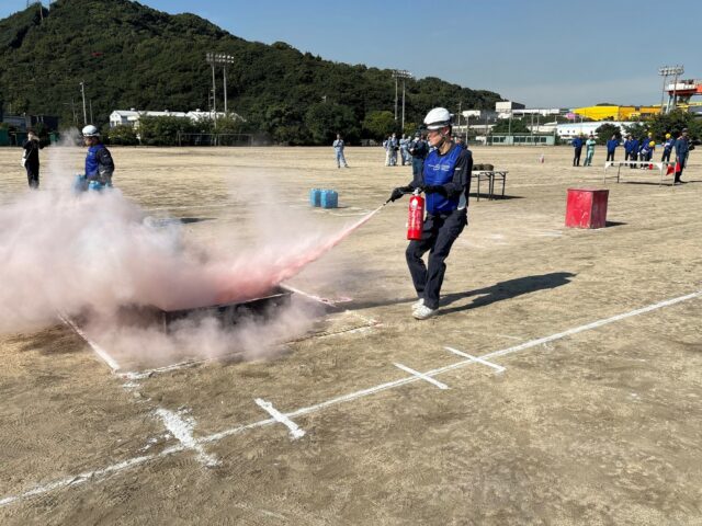10月30日(木)、福山地区消防組合主催の消防競技大会が福山市箕沖球場で開催され、ツネイシカムテックスから、「一般消火の部(女性の部)」と「危険物施設の部」に、各1チーム(計4名)が出場しました。